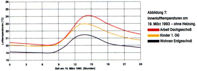 Am 19. März 1993 lief bereits seit Tagen keine Heizung, die Heizenergie kam allein mit der Sonneneinstrahlung durch die großen Südfenster ins Haus.