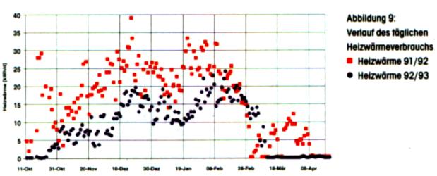 Die (alte) Wärmeschutzverordnung (von 1982-1994 gültig) begrenzte den Heizenergiebedarf bei Neubauten auf Werte zwischen 15 und 18 Liter Heizöl je Quadratmeter und Jahr.