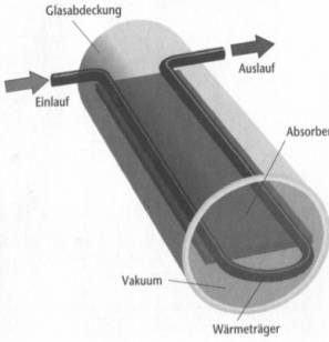 Diese Baueinheit wird als Kollektor bezeichnet. Auch Kollektoren gibt es in den unterschiedlichsten Materialien und Bauformen. Ja nach Bauart wird unterschieden zwischen Flach- und Vakuumkollektoren. Bei Vakuumkollektoren werden die ausgezeichneten Wärmeisolationseigenschaften eines Vakuums – ähnlich wie in einer Thermoskanne – genutzt. Vakuumkollektoren gibt es auch als Flachkollektoren, jedoch meist als Röhrenkollektoren.