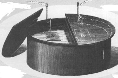 Mit diesem photoelektrischen Element erzeugte der französische Physiker Alexandre-Edmond Becquerel 1839 erstmals Strom aus Licht: Er konstruierte einen Topf der in der Mitte durch eine dünne, für Flüssigkeiten durchlässige, das Licht aber sperrende Membran halbiert war, so dass praktisch zwei Abteilungen entstanden. Auch den Topfdeckel halbierte er, so dass wahlweise die eine oder andere Hälfte über jeweiligen Abteilung aufgeklappt werden konnte. Den Topf füllte er mit einer chemischen Lösung, tauchte in jede der beiden Abteilungen eine Platte aus Platin hinein und verband die beiden Elektroden mit einem empfindlichen Galvanometer. Öffnete man einen Deckel, so entstand unter der Einwirkung des Lichts ein Potentialunterschied zum dunkel bleibenden Teil, der am Galvanometer abgelesen werden konnte. Die heutigen Solarzellen nutzen nicht die Einwirkung des Lichts auf Elektroden in chemischen Lösungen, sondern den Potentialunterschied und Sperrschicht-Effekt, der beim Auftreten der Lichtquanten auf die unterschiedlich dotierten Teile eines Halbleiters entsteht. Im übrigen basieren sie aber genauso auf dem photoelektronischen Effekt.